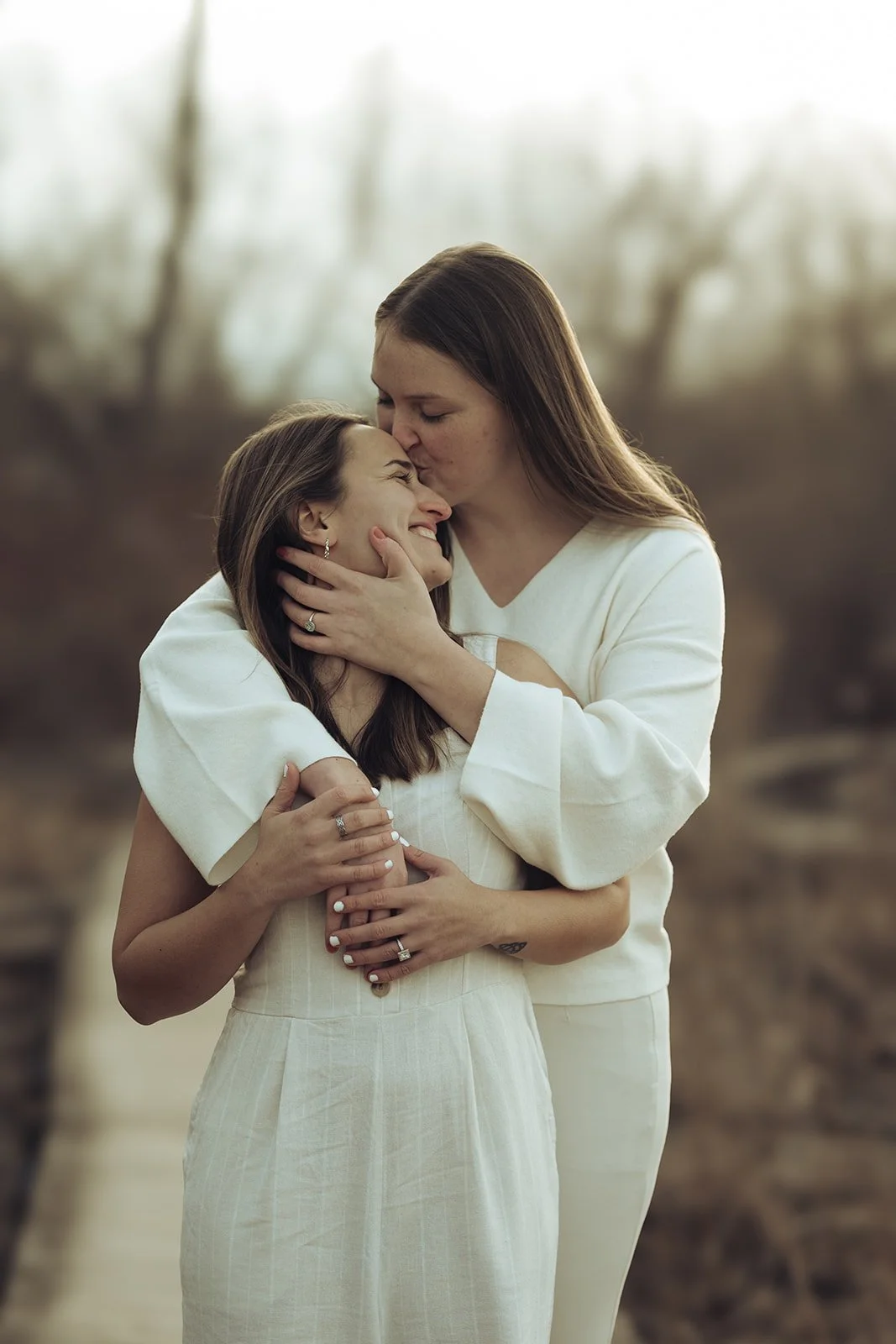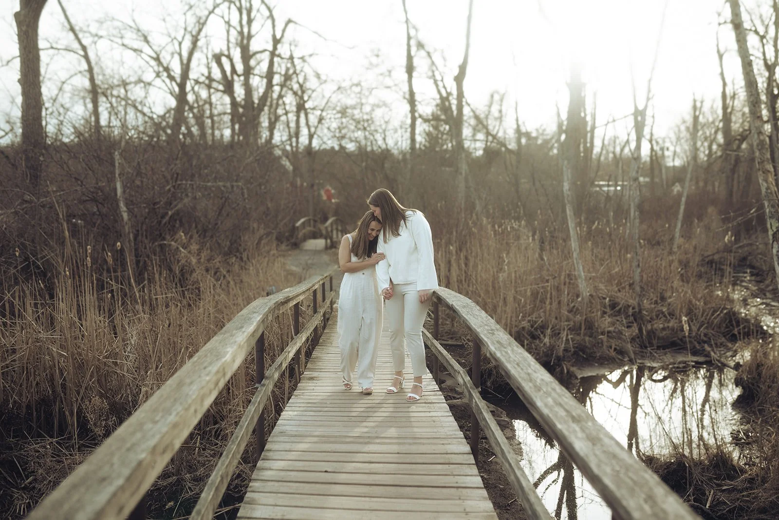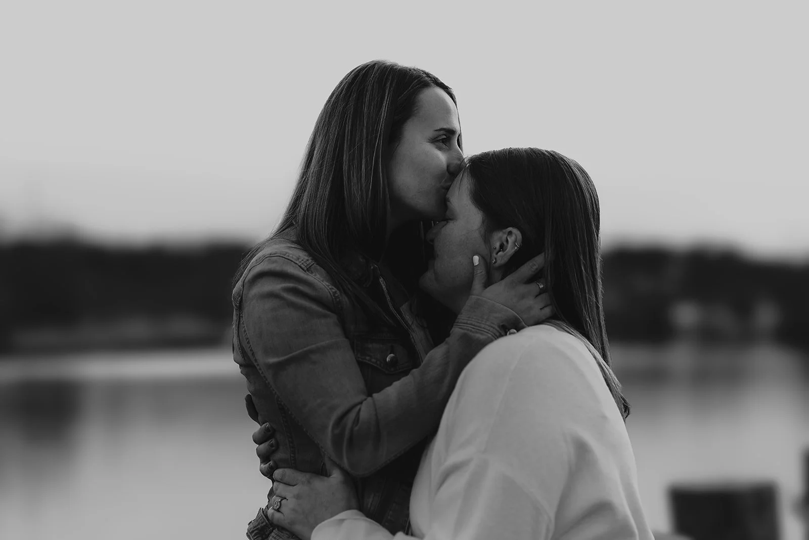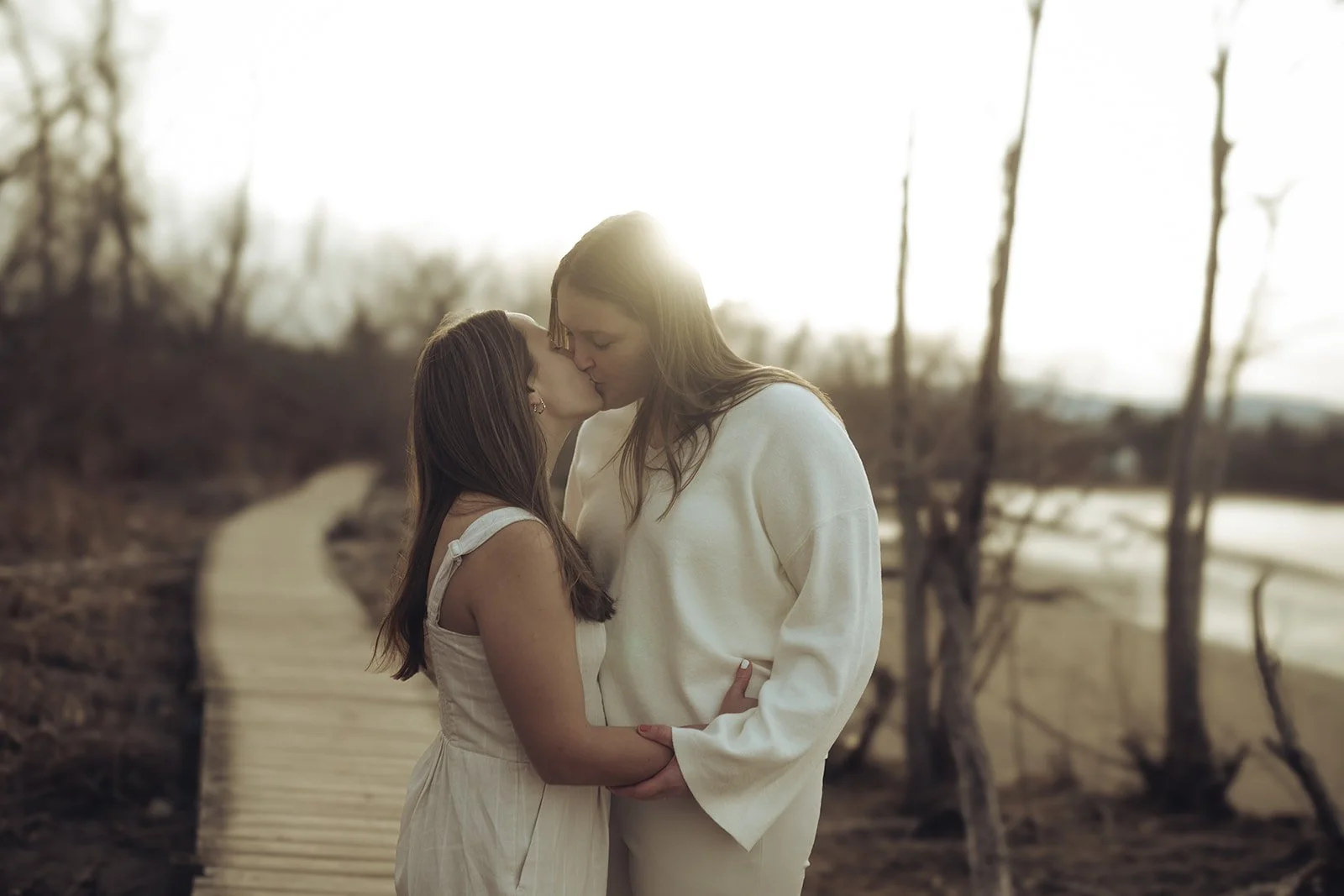 Knowing I wanted to make the most of the scenery, I arrived an hour early to scout the trail and get a feel for the space—where the light hits, how the water reflects, and where I could position Kaitlyn and Sara to bring their story to life. The moment they arrived, everything just clicked. Their energy was easy, genuine, and deeply connected.