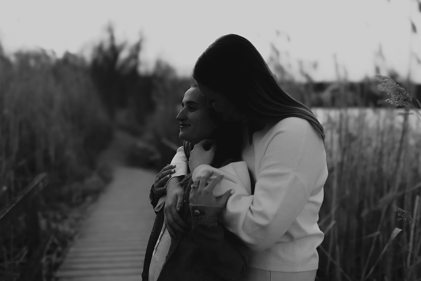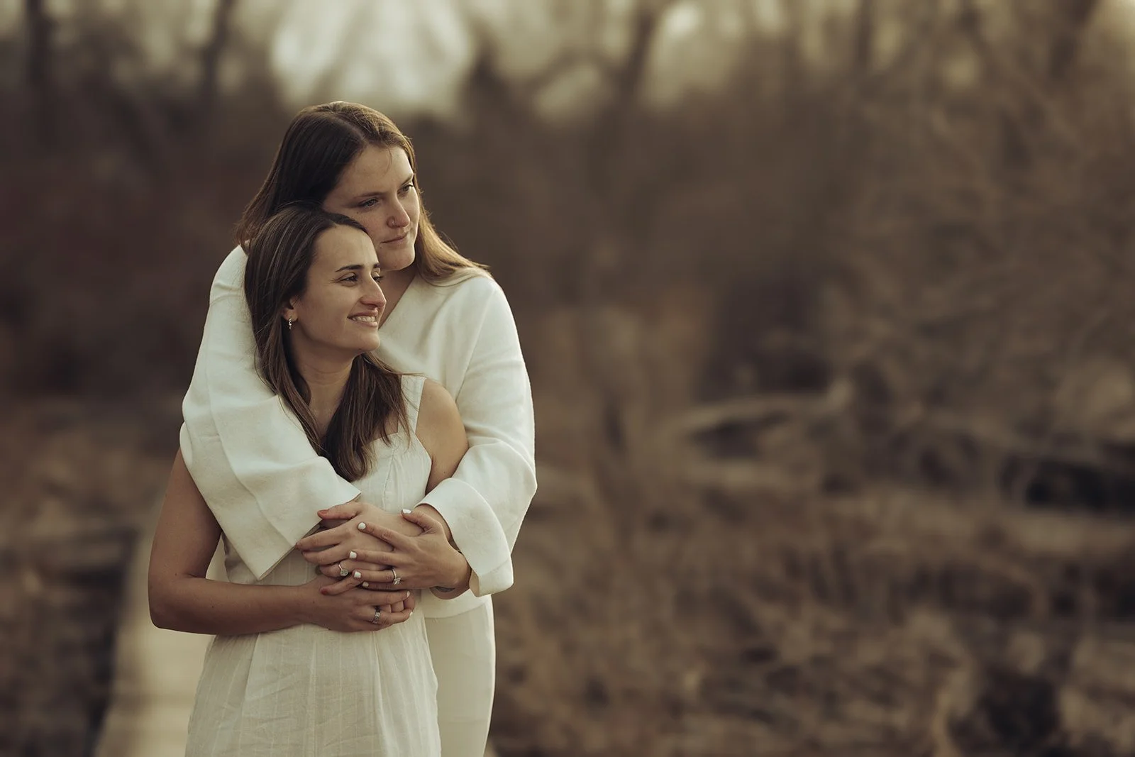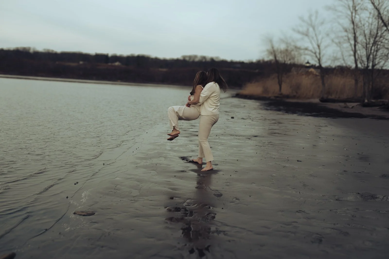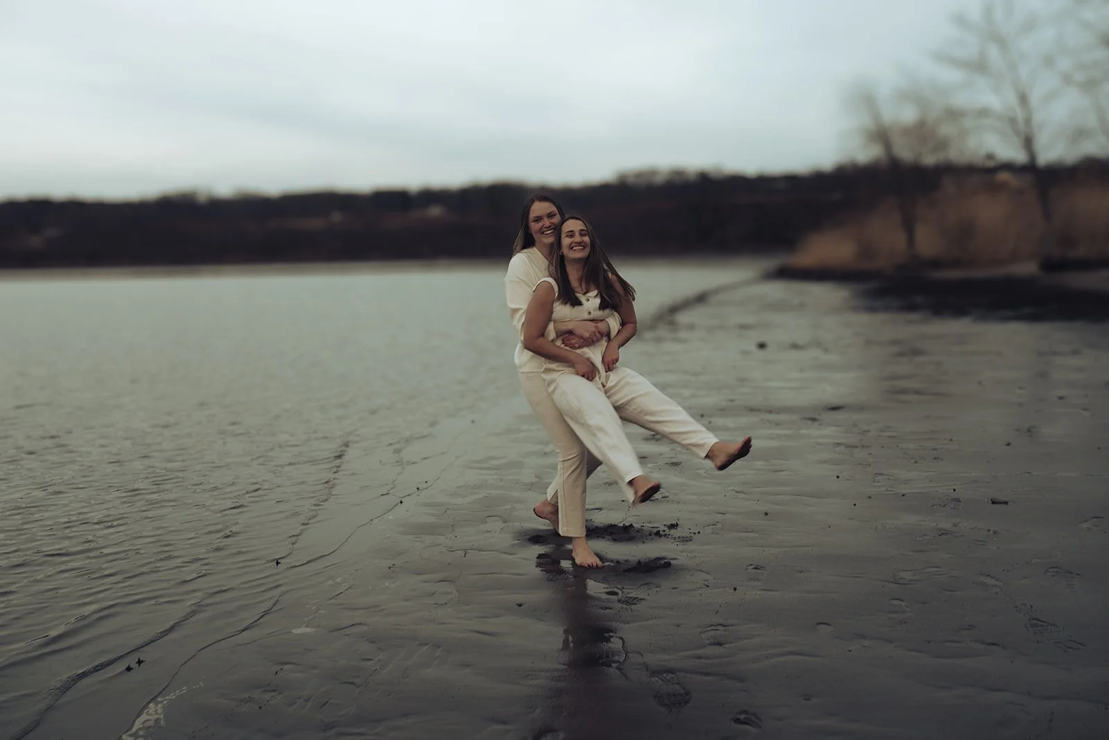 Knowing I wanted to make the most of the scenery, I arrived an hour early to scout the trail and get a feel for the space—where the light hits, how the water reflects, and where I could position Kaitlyn and Sara to bring their story to life. The moment they arrived, everything just clicked. Their energy was easy, genuine, and deeply connected.