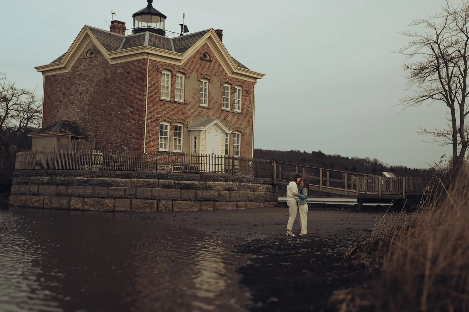I had the absolute pleasure of meeting Kaitlyn and Sara for the first time at their engagement session on March 23, 2025, at the stunning Saugerties Lighthouse. It was my first time photographing at this iconic Hudson Valley location, and it turned out to be the perfect setting for their laid-back, joy-filled love story.
