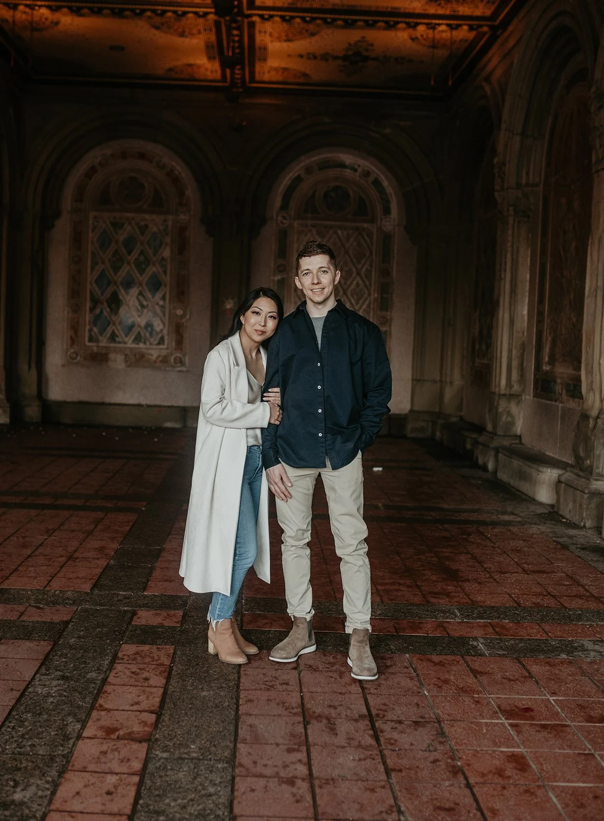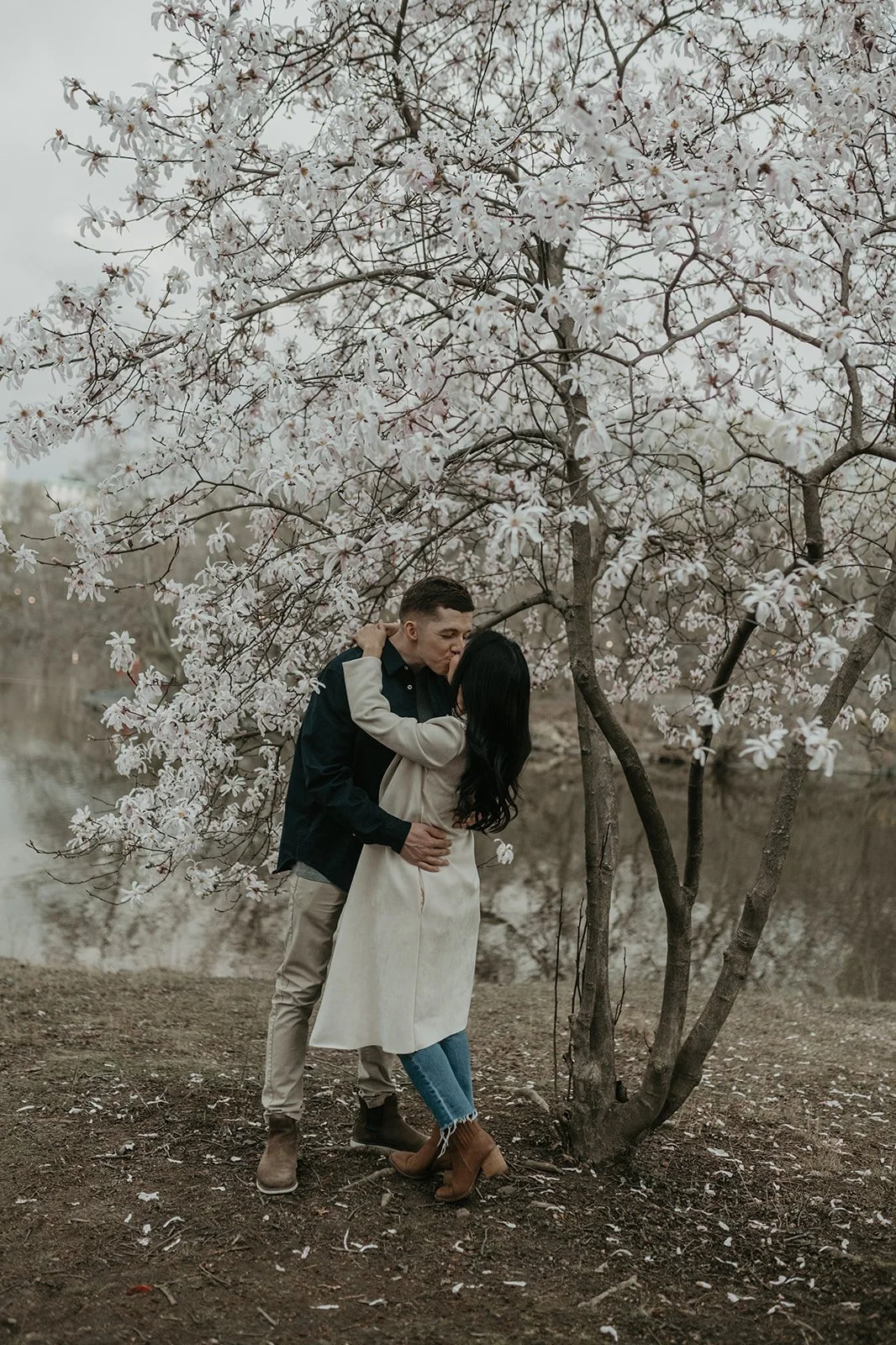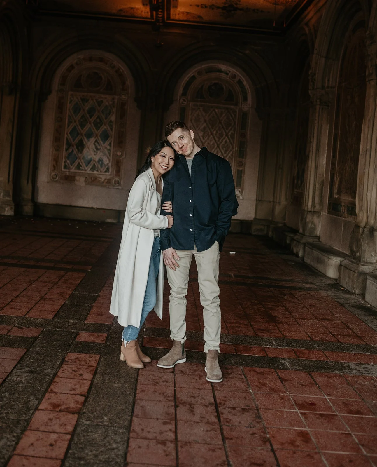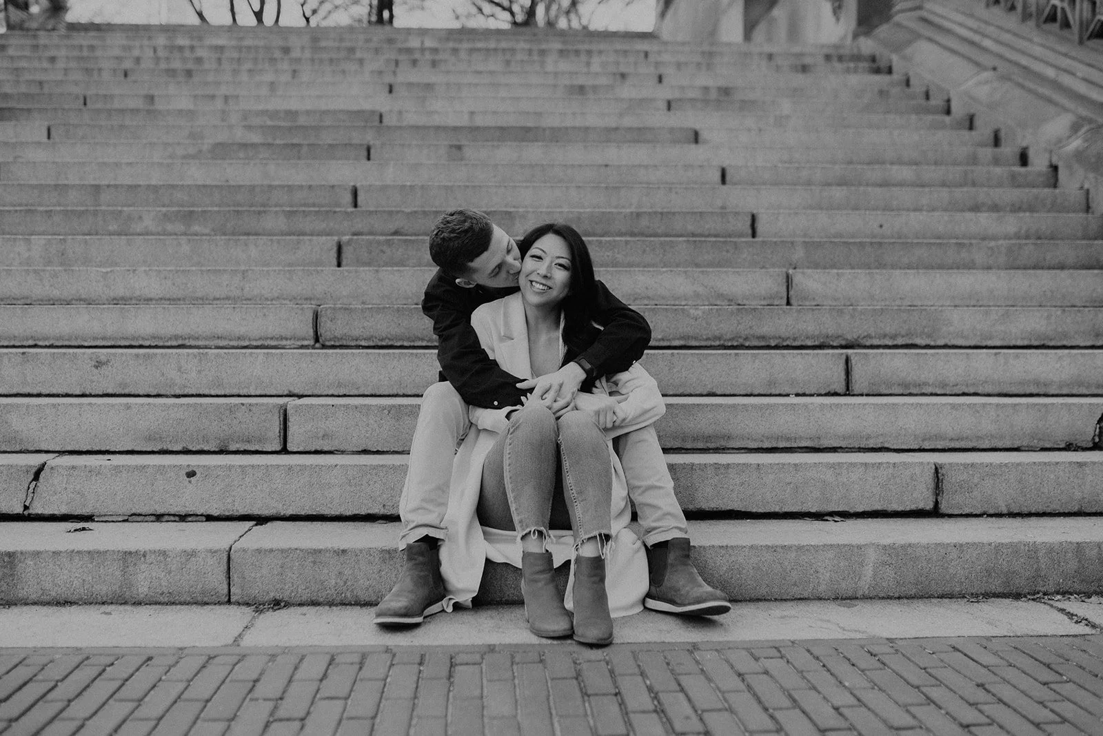 Alex proposed in the French Alps! He was skiing with a friend ahead of me. I turned a corner and saw him lying on the ground by a pole, his skis completely sprawled out across the snow. His friend told me that a kid had cut him off so he ran into the pole to avoid him. His friend went to go get ski patrol, while I stayed with him. I was surprised when he got up onto one knee and proposed!
