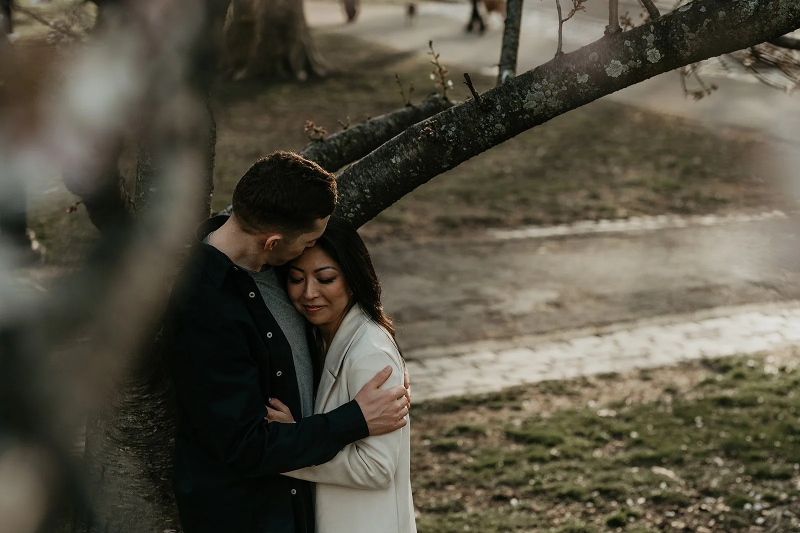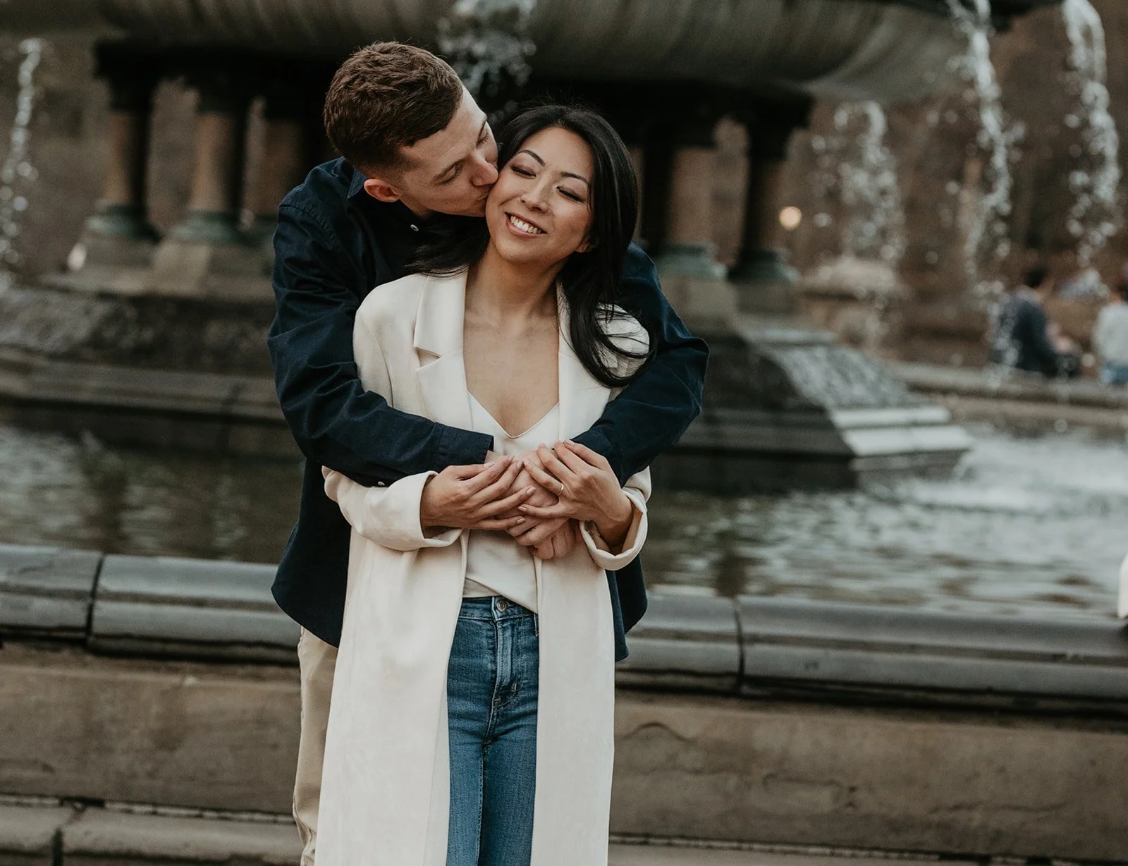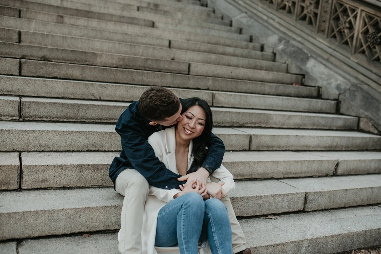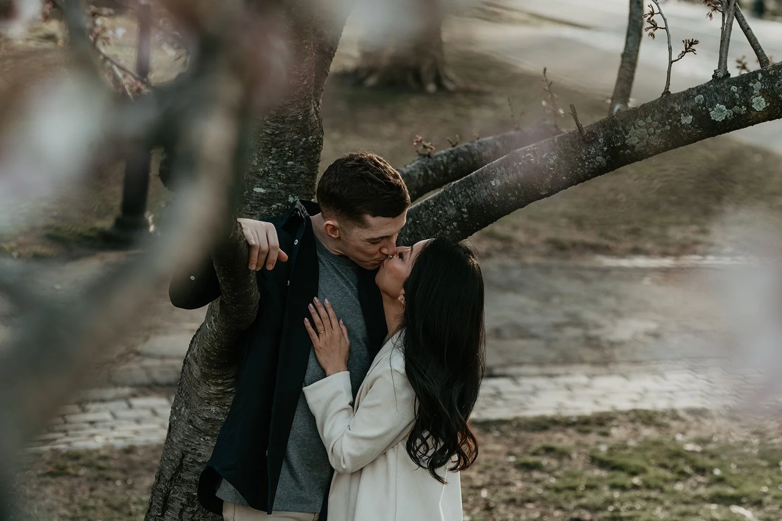 Alex proposed in the French Alps! He was skiing with a friend ahead of me. I turned a corner and saw him lying on the ground by a pole, his skis completely sprawled out across the snow. His friend told me that a kid had cut him off so he ran into the pole to avoid him. His friend went to go get ski patrol, while I stayed with him. I was surprised when he got up onto one knee and proposed!