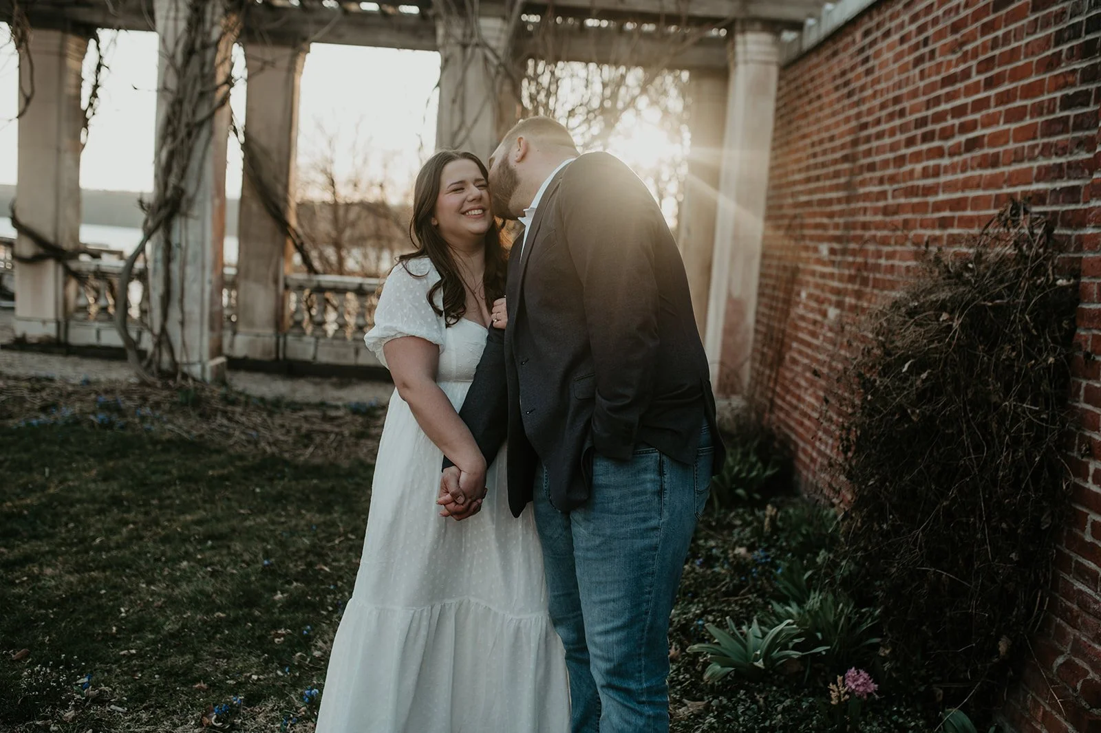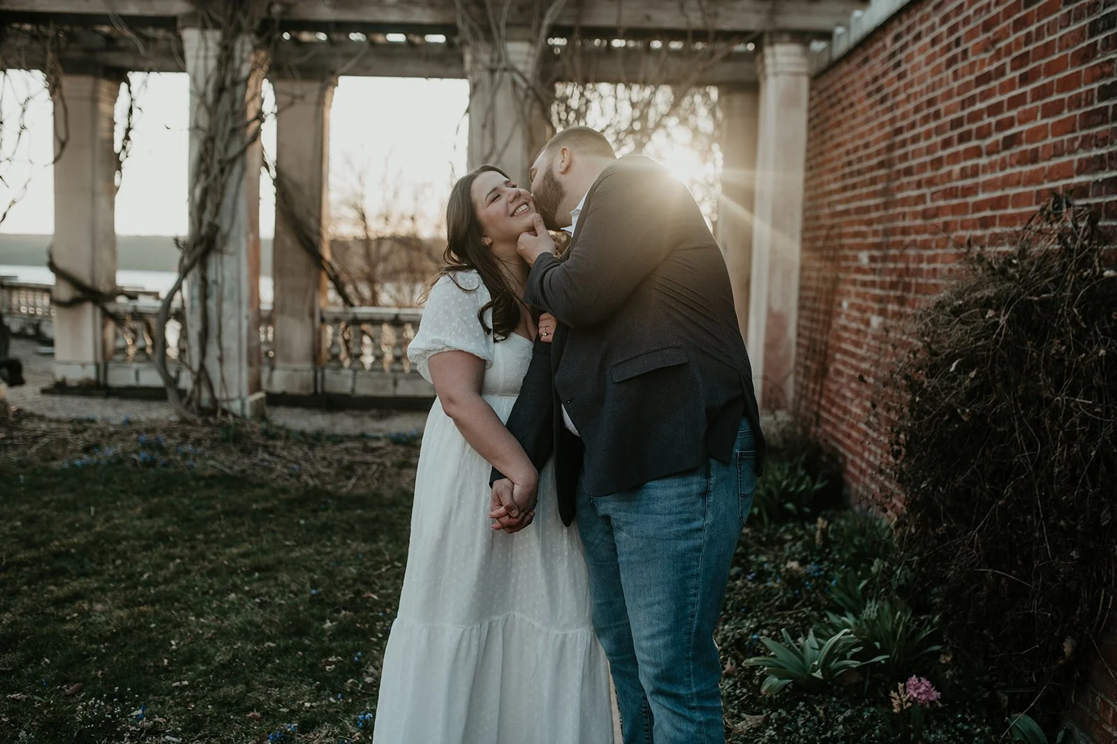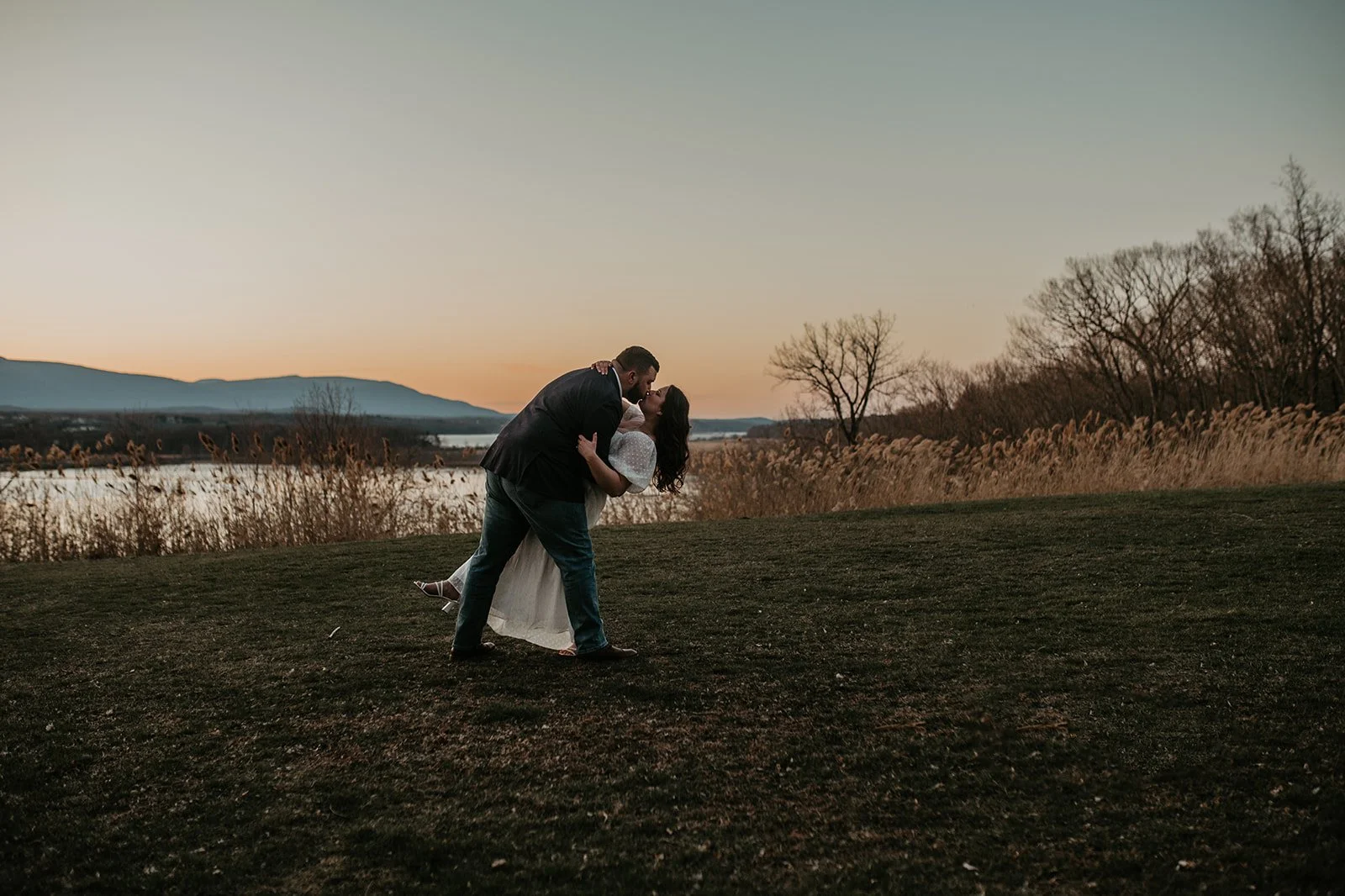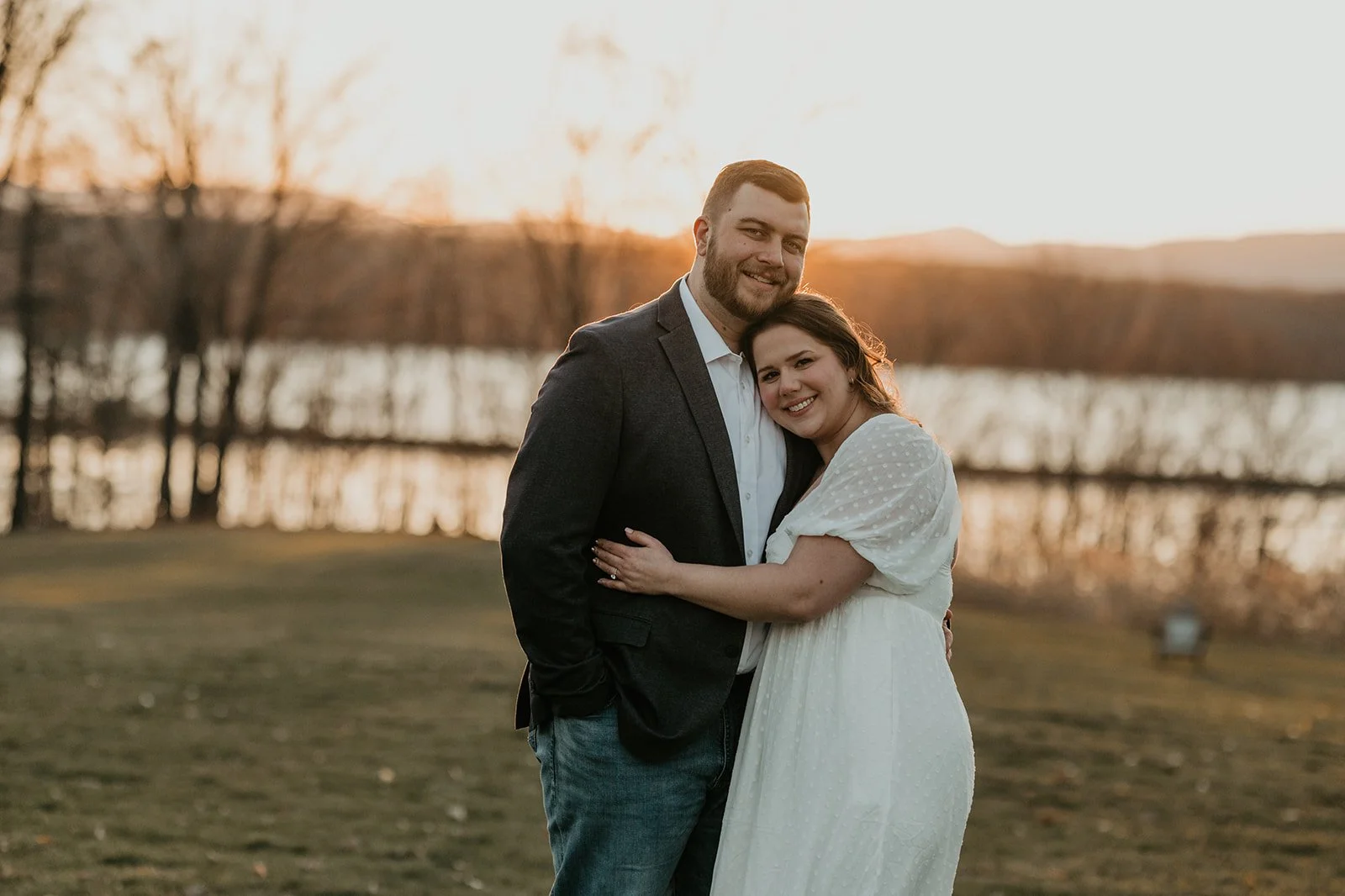 It was Bryan’s birthday and we all went out together (both of our families) along the Hudson River in Piermont NY. We had a nice dinner and after dinner as the sun was setting we went to “take pictures” and that’s when Bryan went down on one knee and popped the question! It was so nice having both our families there to witness and experience the special moment with us. Following we went to our favorite local bar with everyone and our friends met us and we celebrated with drinks!
