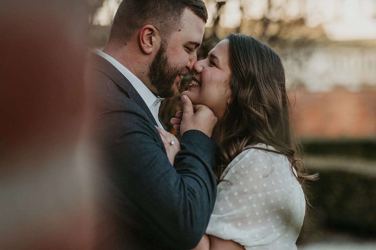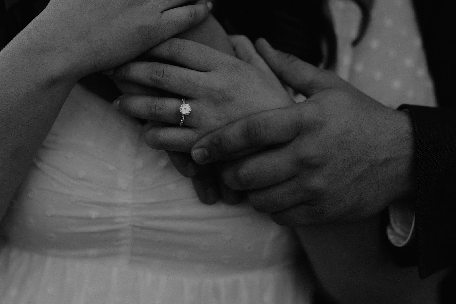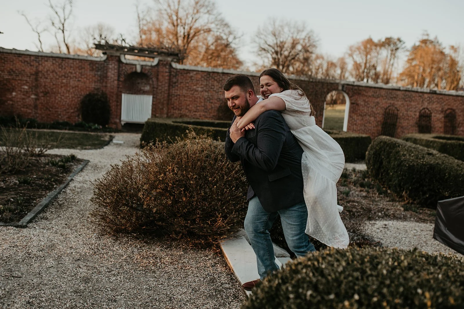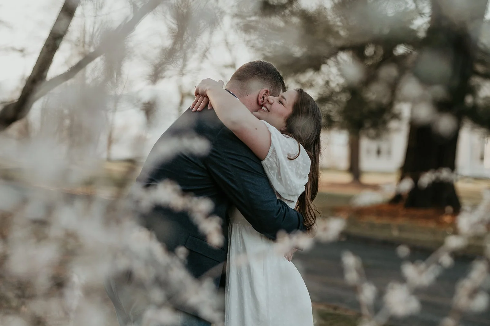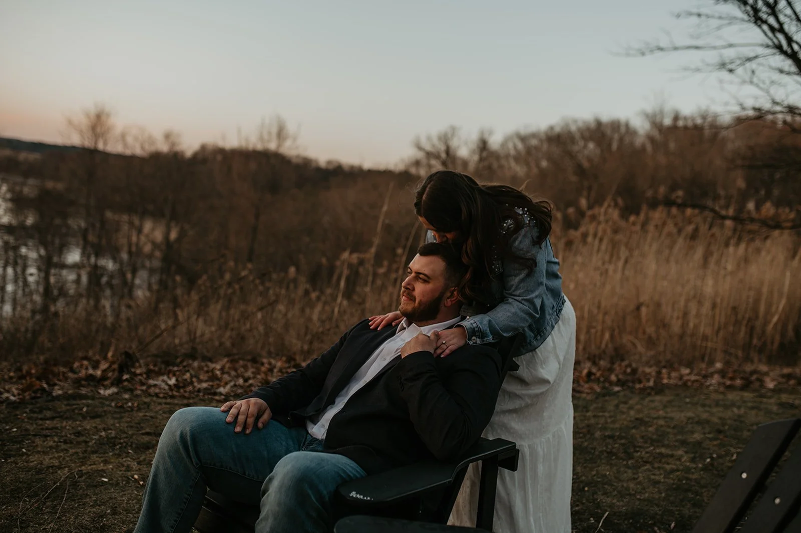 It was Bryan’s birthday and we all went out together (both of our families) along the Hudson River in Piermont NY. We had a nice dinner and after dinner as the sun was setting we went to “take pictures” and that’s when Bryan went down on one knee and popped the question! It was so nice having both our families there to witness and experience the special moment with us. Following we went to our favorite local bar with everyone and our friends met us and we celebrated with drinks!